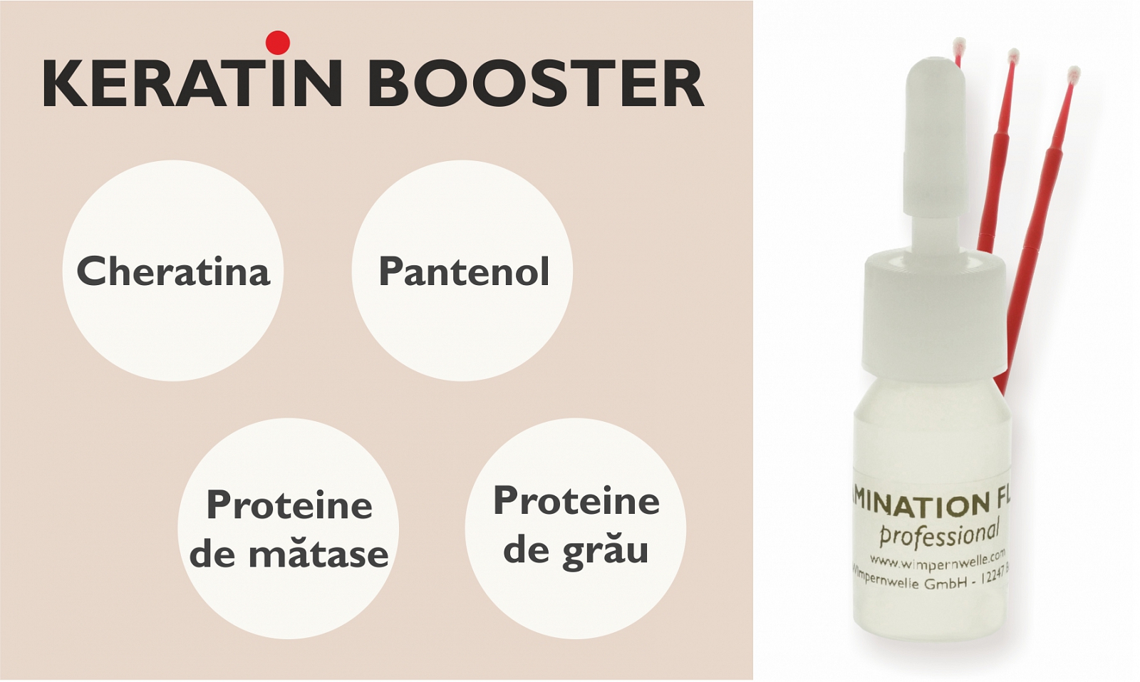 FLUIDUL PENTRU LAMINARE profesional protejează în plus structura genelor după fiecare procedură şi asigură vigurozitatea şi luciul genelor cu KERATIN BOOSTER - un fluid de ultimă generație cu substanțe active valoroase.