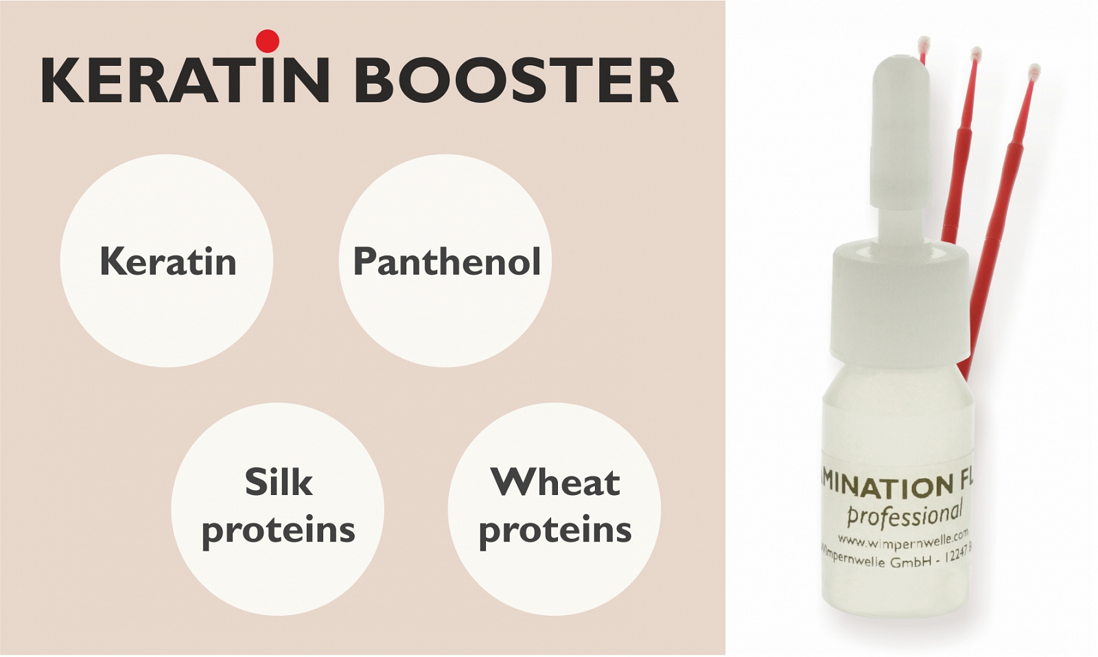 The LAMINATION FLUID professional now helps to reinforce the structural build-up after any treatment and gives strong and shiny eyelashes by the KERATIN BOOSTER, a high-end fluid with most valuable active substances.