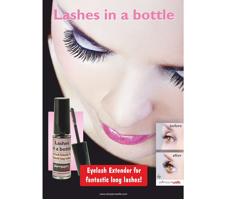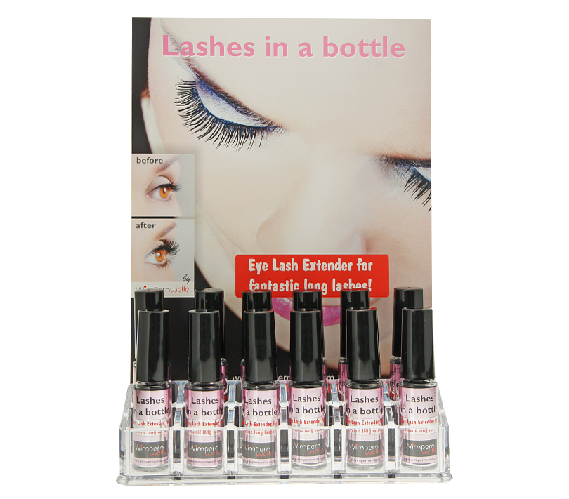1 x Display (Acryl) with a backcard in English, 12 x Lashes in a bottle plus Tester: 1 x Lashes in a bottle and 1 x VOLUME MAX Mascara plus 1 x Poster, Customer brochures: "Decorative Cosmetics" (20 pcs.) and Lashes in a bottle instructions (20 pcs.)