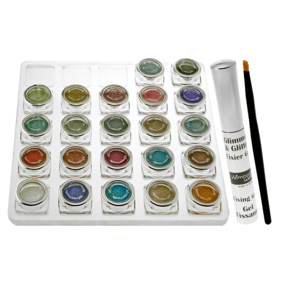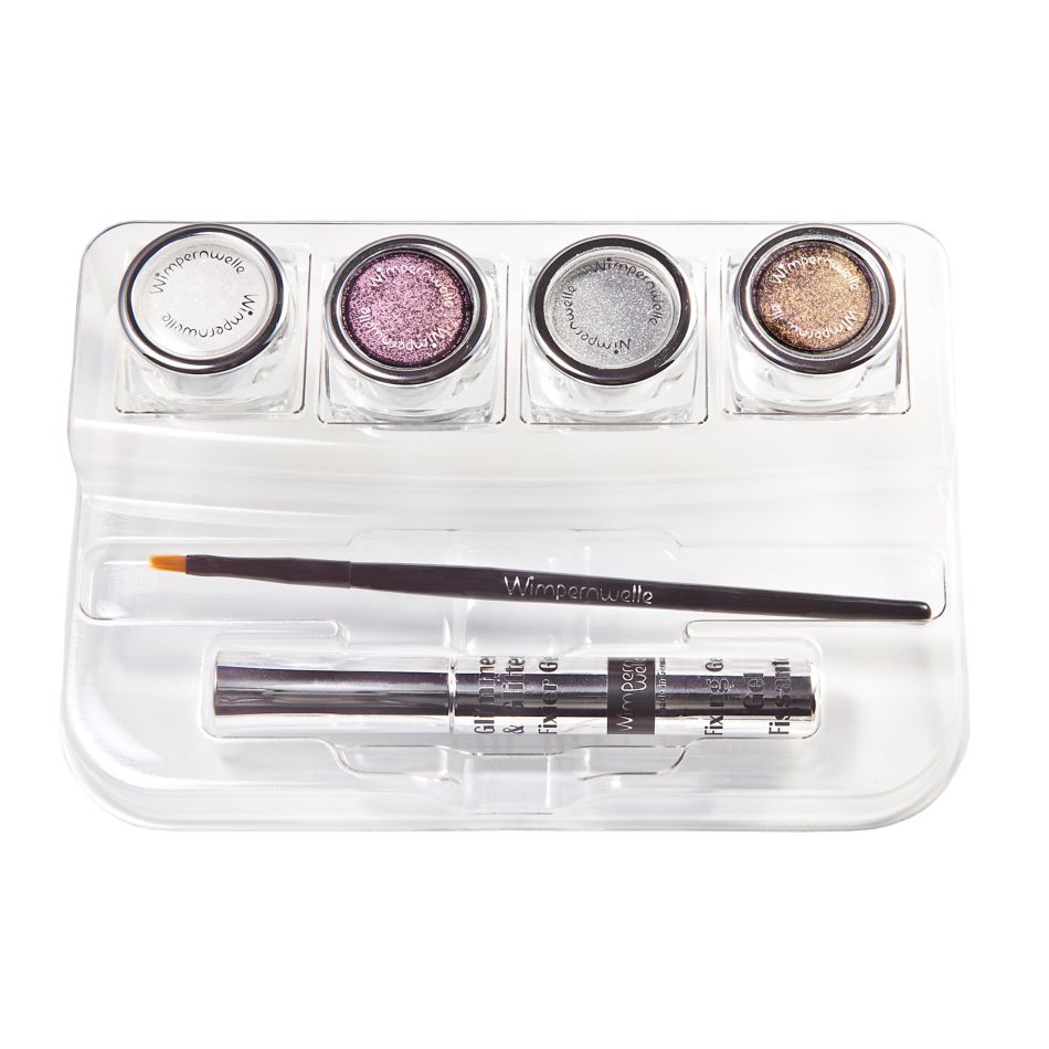 Glimmer & GlitterBAR con 4 tonalidades Sombra de ojos a elegir, Gel fijador y Pincel