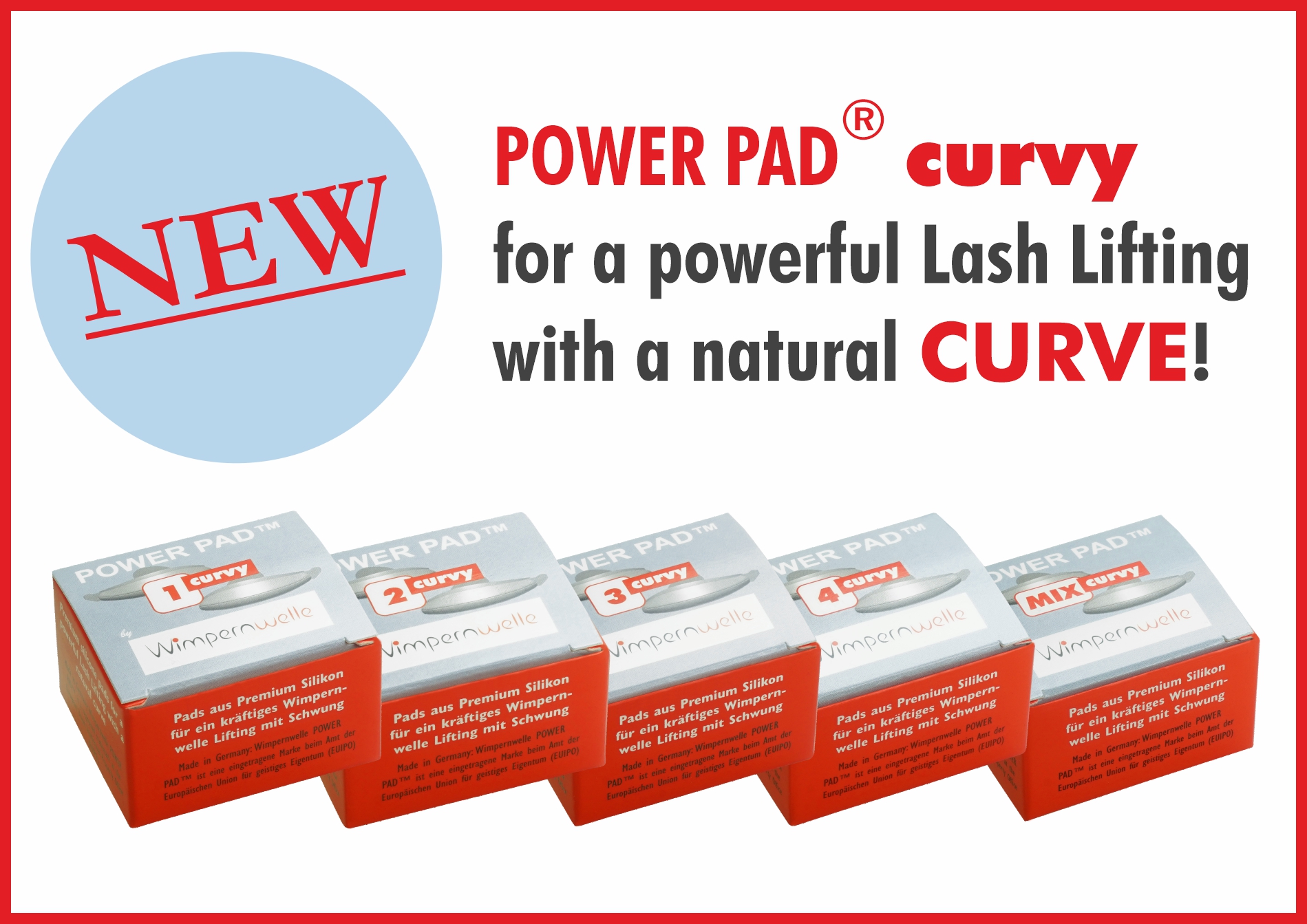 In the future you can choose between 2 pad shapes for the Lash Lifting. The Power Pads CURVY - made of skin-friendly premium silicone - are available in 4 sizes for different degrees of strongly rounded lash roots.