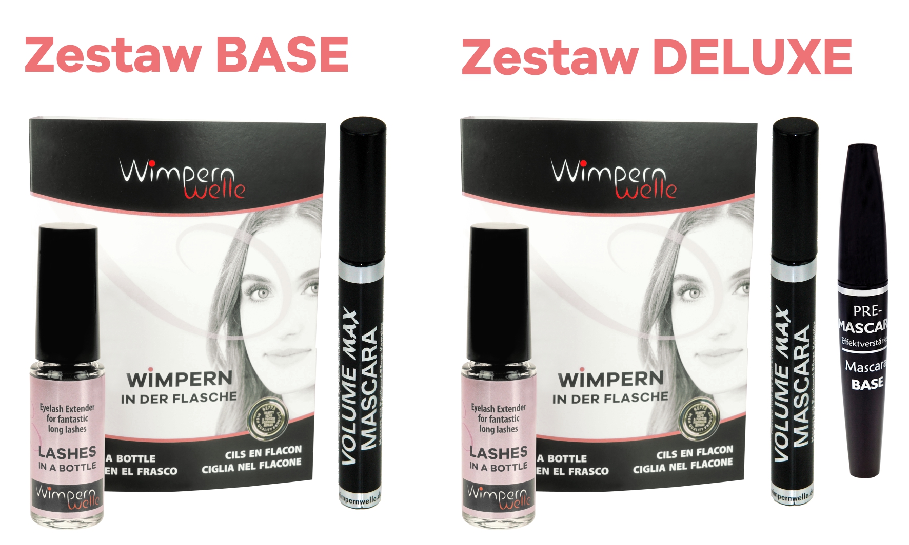 Rzęsy w butelce zestaw DELUXE z 1x PRE-Mascara, 1x Volume Max Mascara i 1x Rzęsy w butelce