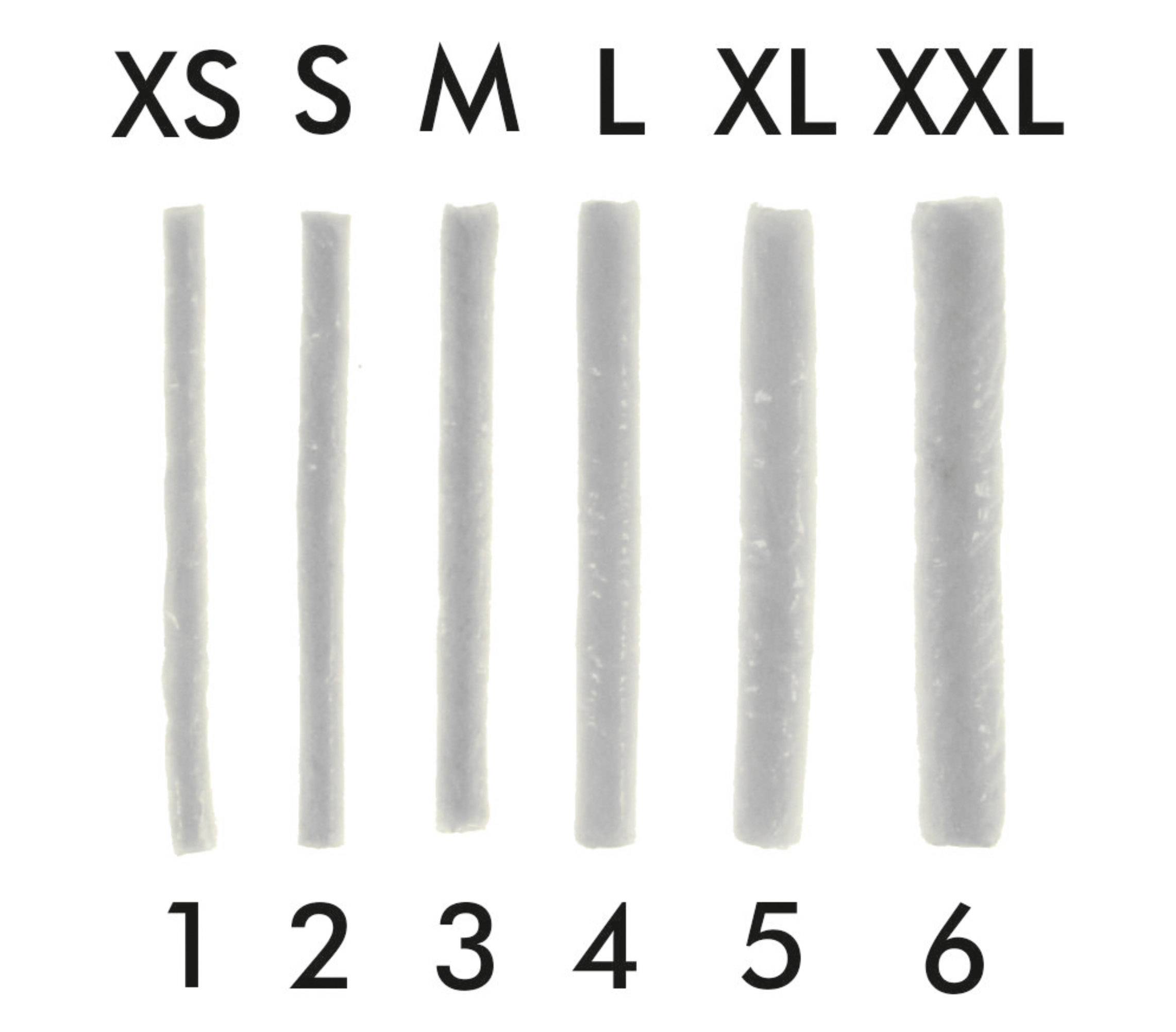 Dostępne w 6 rozmiarach: Rozmiar 1 - mini - XS, rozmiar 2 - mały - S, rozmiar 3 - średni - M, rozmiar 4 - duży - L, rozmiar 5 - bardzo duży - XL, rozmiar 6 - 2 x bardzo duży - XXL
